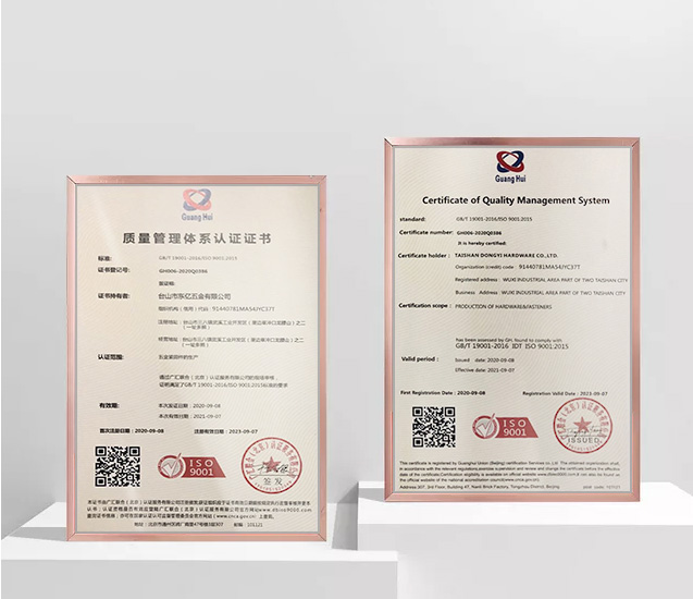 體系認證,生產符合GB,JIS,ISO,DIN,ANSI等標準的各種緊固件